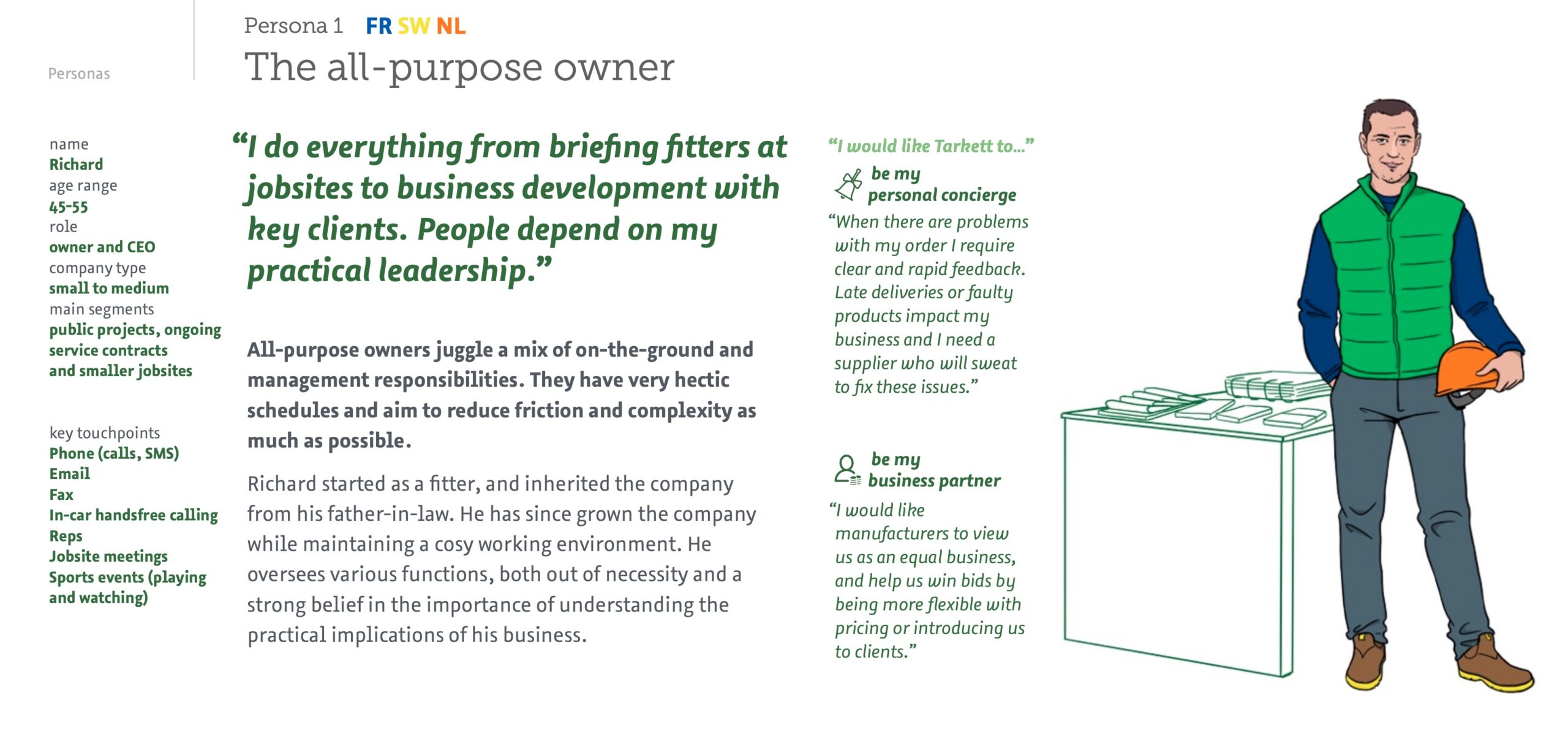 Example of persona, a behavior-based outline of a potential user, to support market strategy definition